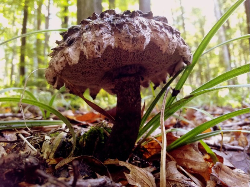 Первое: этот гриб - Шишкогриб хлопьеножковый (— Strobilomyces floccopus) занесен в Красную Книгу. То есть - мало совсем осталось этих смешных грибных леших. И их требуется защищать. От развязных грибников в первую очередь.