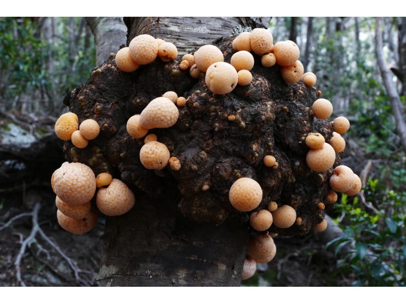 То есть, говоря проще, гриб внедряясь в ветки деревьев, заставляет их выращивать опухоль. В которой гриб прекрасно себя чувствует. И это возможность - размножаться. То есть разносить споры по всему лесу.