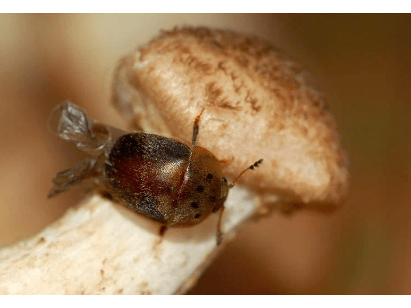 Если вам повезет найти хорошее полугнилое дерево с целым микрорайоном опят - вам повезет вдвойне. Вы вместе с опятами принесете в дом еще много хорошей и нужной живности. Это многочисленные жуки блестянки. Cychramus variegatus.